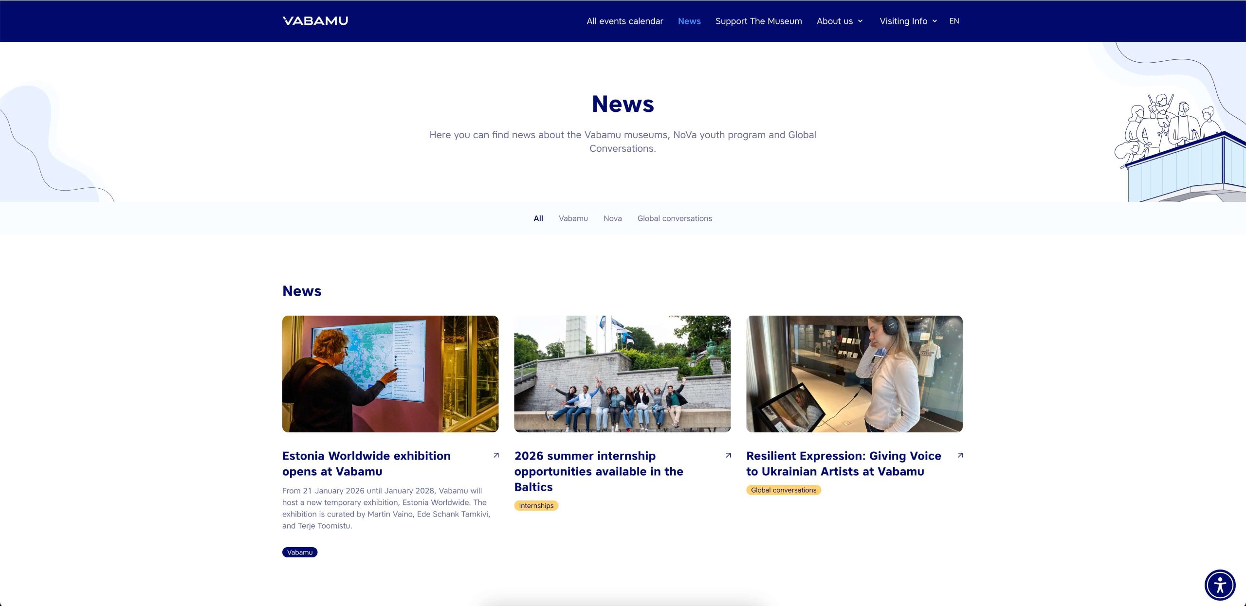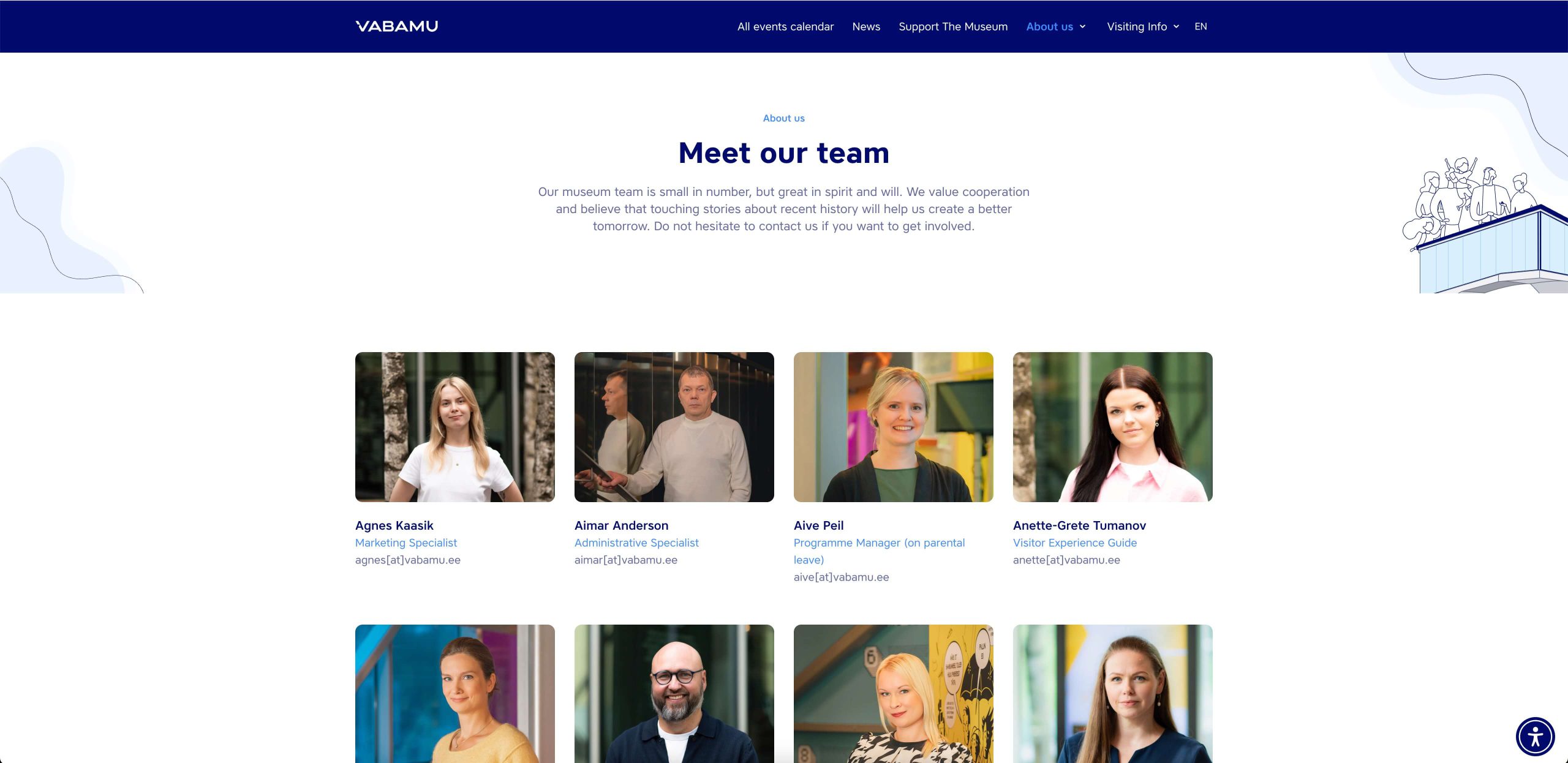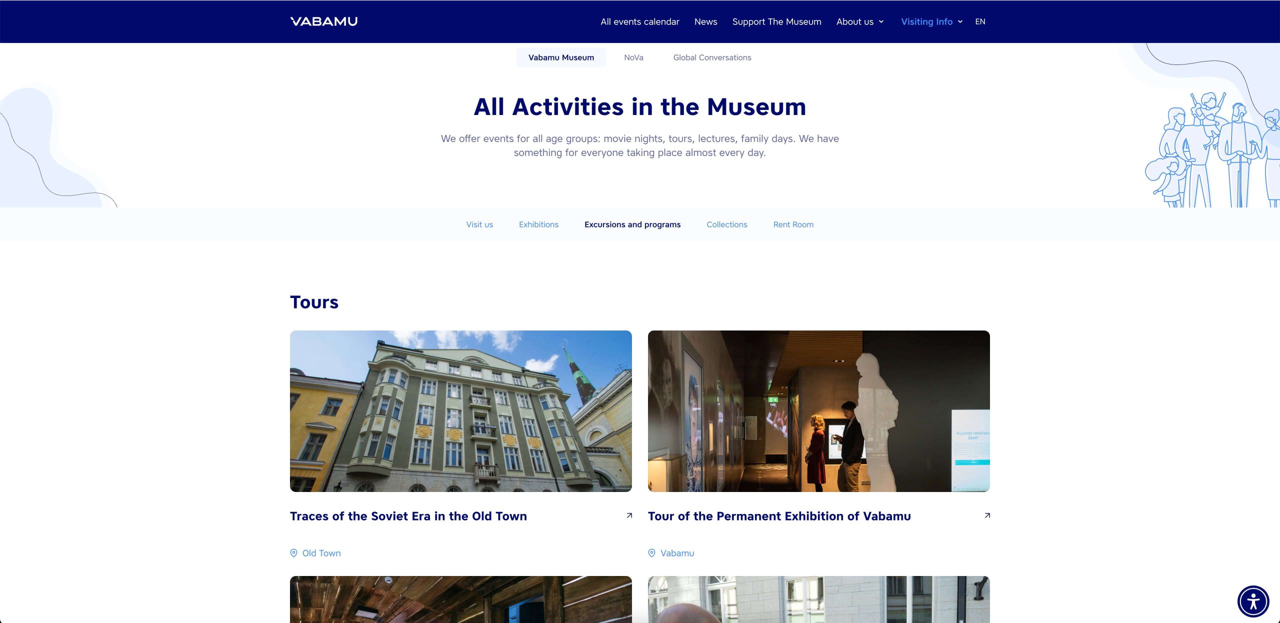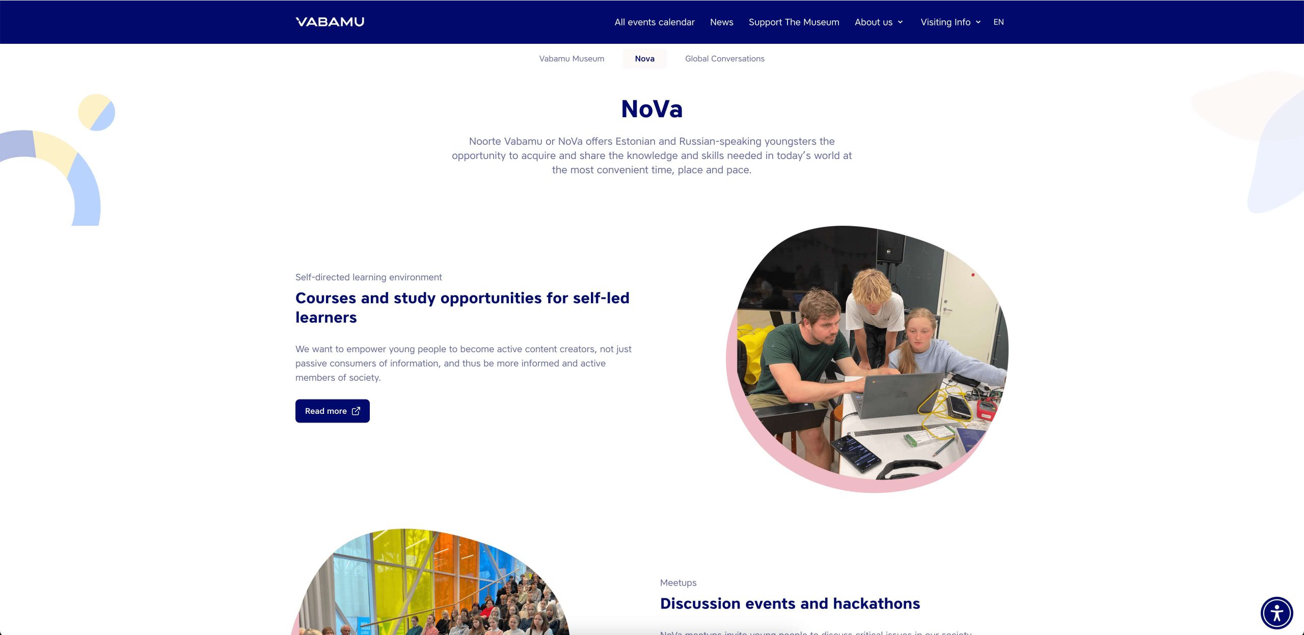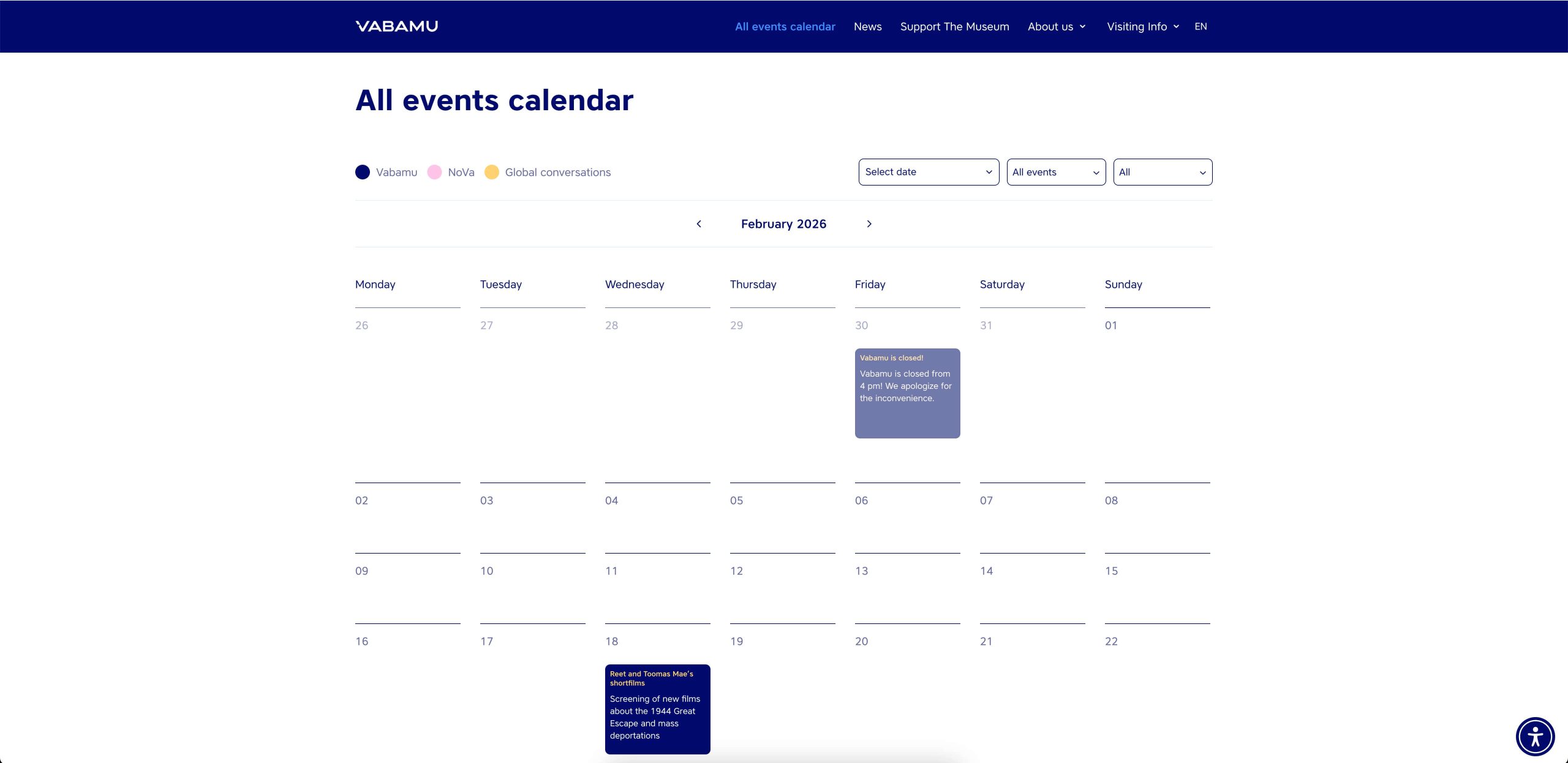 VABAMU – WordPress project, featuring a fully custom design and development built entirely from scratch. Custom calendar plugin.